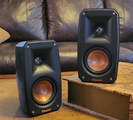 This Klipsch RTP Theater Pack includes two wired surround/satellite speakers that deliver powerful sound with a RMS power of 50W. The sleek black color and Klipsch brand make these speakers a great addition to any home audio system. The model is specifically designed for use in home theaters and provides a high-quality audio experience. See photos.